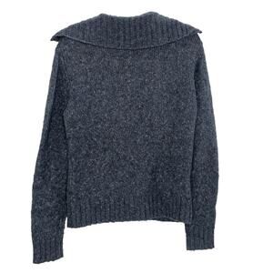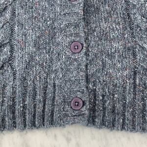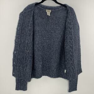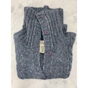 LL BEAN Cardigan Small Blue Wool Blend Marled Cable Knit Sweater Button VTG EUC