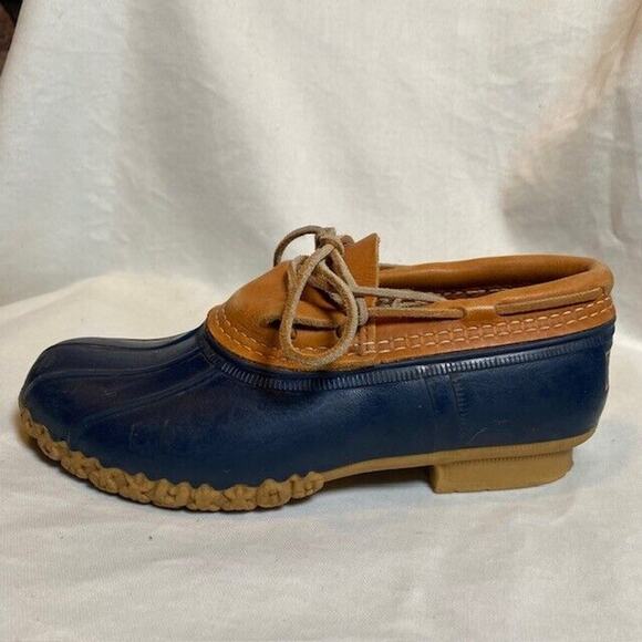 LL BEAN Duck Boots Navy Blue Moc Low Top Womens 6 Rubber Leather USA