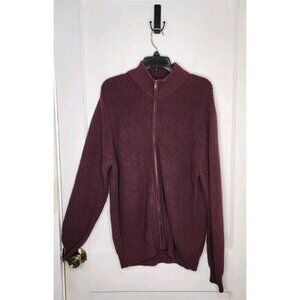 LL BEAN Full Zip Sweater Men’s XL Purple Ribbed Cotton Banded Sleeves 0 FHT4