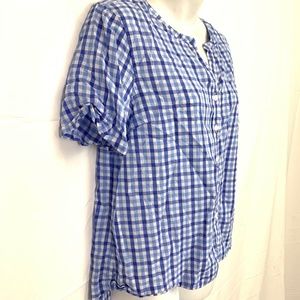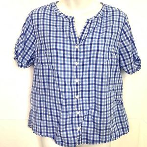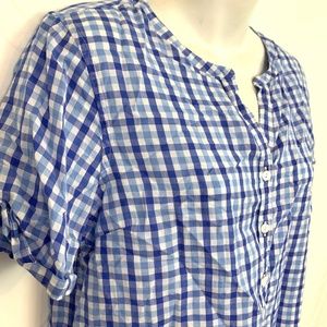 LL BEAN Gingham Blue Plaid Button Down Top sz M P