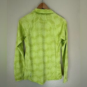 Stylish green pullover with a unique pattern. Features a half-zip design and long sleeves. New condition no flaws