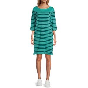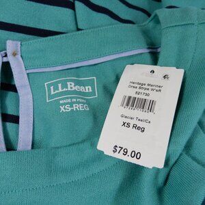 L.L. BEAN Heritage Mariner DRESS Size XS Pockets Glacier Teal Stripe NEW $79