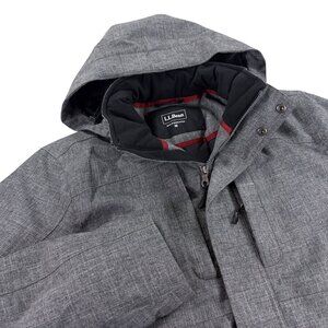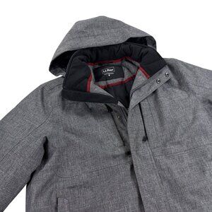 LL BEAN Hooded Winter Jacket Mens Size M Quilt Lined Heather Gray Winter Coat