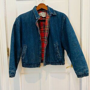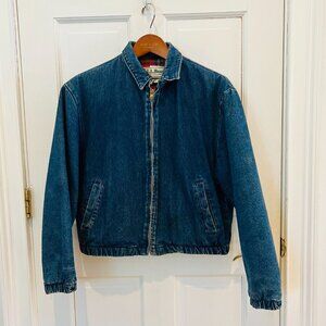 LL BEAN Insulated Flannel Lined Barn Chore Denim Harrington Jacket Coat VTG 80s