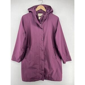 LL BEAN Jacket Womens PM Petite Rain Coat Long Windbreaker Hooded Purple