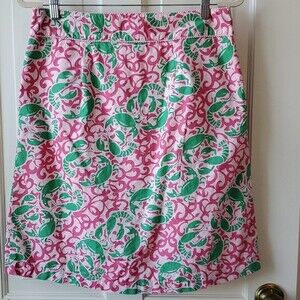 LL BEAN LOBSTER PINK GREEN COTTON SKIRT SIZE 8