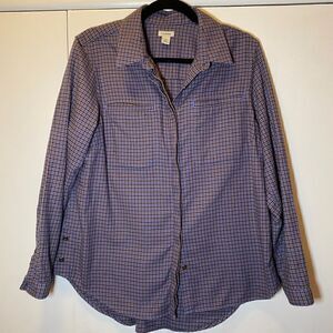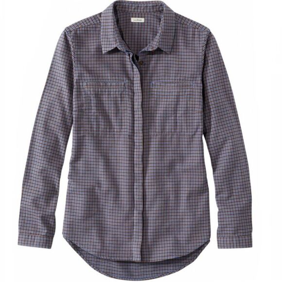 L.L. BEAN Long Sleeve Button-Up Flannel Wicked Good Top Nutmeg Blue Women’s MP