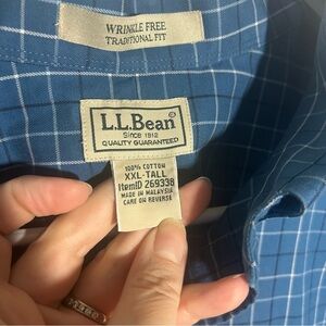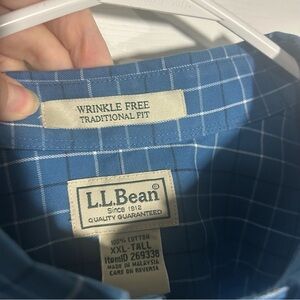 LL BEAN Mens Blue Plaid Long Sleeve Button Down Size XXL Tall Wrinkle Resistant