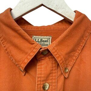 L.L BEAN Mens Corduroy Shirt XL Tall 100% Cotton Orange Long Sleeve Button up Vi