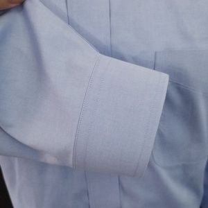 LL BEAN Men's Long Sleeve Button Front Blue Solid Traditional Fit Sz 18