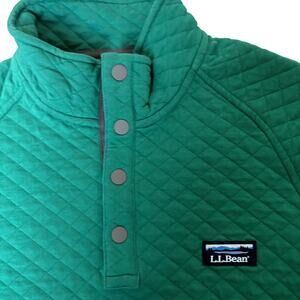 L.L. BEAN Men's Small Quilted Pullover 3/4 Snap in Green