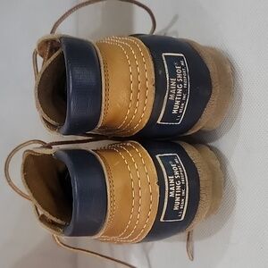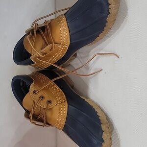 L.L. Bean Rubber & Leather ankle boot hunting shoe. The triple stitching provides long-lasting durability. They have waterproof full grain leather. Chain tread gives reliable 👌 traction. Great for rain, mud, and wet conditions. Great for outdoor work. On the toe of the shoe, there is a mark in the rubber. Please see all pictures.