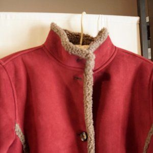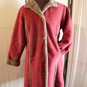 L.L. BEAN Raspberry Coat Microsuede Shearling Hip