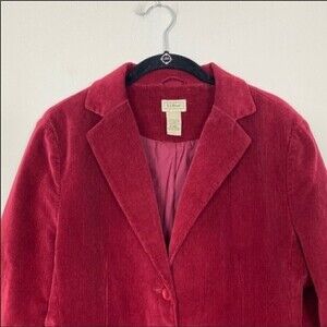 L.L. BEAN Red Ribbed Soft Corduroy blazer Jacket Holiday Christmas 12P Warm