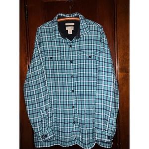 LL BEAN SHIRT FLANNEL BLANKET FLEECE LINED COTTON JACKET BLUE PLAID XL