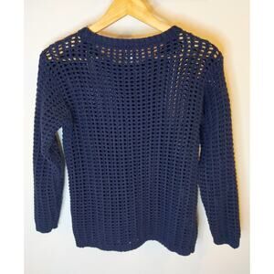 LL BEAN SIGNATURE Navy Open Knit Cotton Sweater Pullover Crochet Style XS