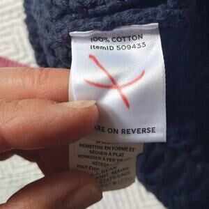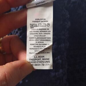 Beautiful L.L. Bean Signature navy blue sweater in an eye-catching open crochet knit pattern. Made from 100% cotton for comfort and breathability.