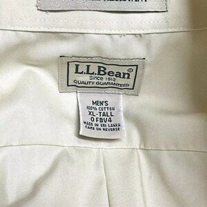 LL BEAN Shirt Men XL TALL Wrinkle Resistant Ivory Beige Oxford Button Down