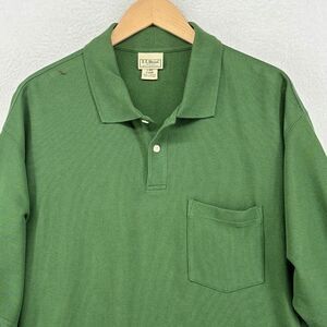 LL BEAN Shirt Mens L Golf Polo Short Sleeve Y2K 2000s Pique Cotton Green VTG