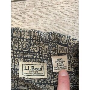 LL BEAN Shirt Mens Large Batik Mayan Aloha Print Aztec Button Up Camp Cotton