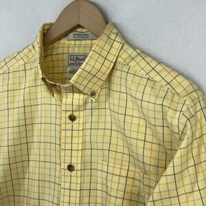LL BEAN Shirt Mens M Wrinkle Resistant Twill Check Button Down Cotton Yellow