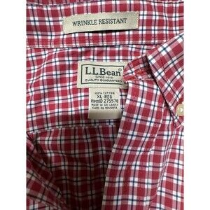 LL BEAN Shirt Mens XL Button Up Plaid Long Sleeve Wrinkle Resistant Red