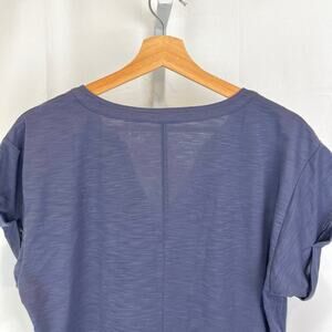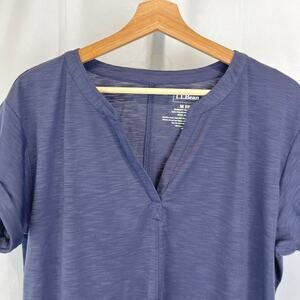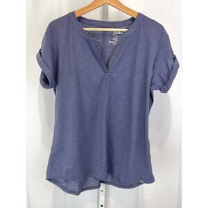 L.L. BEAN Streamside Tee Short Sleeve V Neck Top Slub Knit Blue Gray Size M