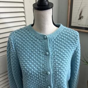 LL BEAN Sweater Womens Large Blue Wool Angora Blend Retro Preppy Grannycore