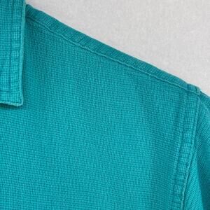LL BEAN Top Womens S Cool Weave Short Sleeve Button Up Woven Green USA Vintage