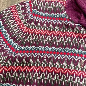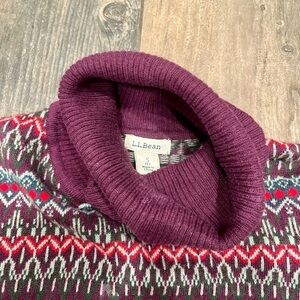 LL BEAN Turtleneck Sweater Cashmere blend Purple Geometric Women Petite S