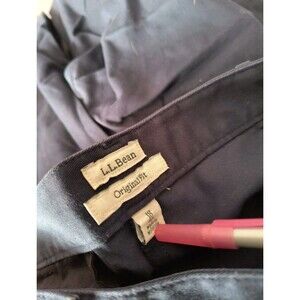 LL BEAN Women's 18 Petite Blue Crop Pants in regular fit made of 100% cotton. These straight leg pants have a high-rise waist size of 38 inches with a flat front closure and zip. The inseam is 19 inches, suitable for machine wash. Designed with a solid pattern and cropped style, these pants are perfect for petite women.