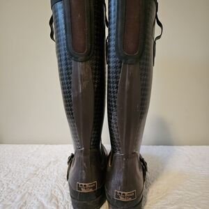 LL BEAN Wellie Tall, Black & Brown Houndstooth, Waterproof Rain Boots 9.5/10