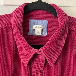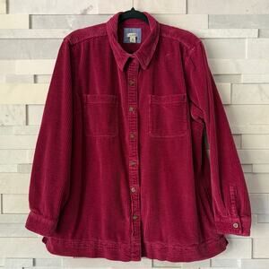 LL BEAN Wide Whale Corduroy Button Front Shirt Jacket Pockets Burgundy 2X
