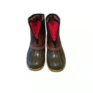 LL BEAN Woman’s Tan Bean Boots 7” Shaft Buffalo Check Fleece Lined Zip Front 7