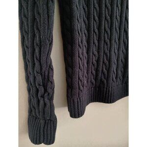 LL BEAN Womens M Navy Blue Chunky Cable Knit Cotton Crewneck Fisherman Sweater