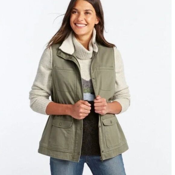 L.L. BEAN Women's Olive Green Utility Sherpa Lined Vest, Size M