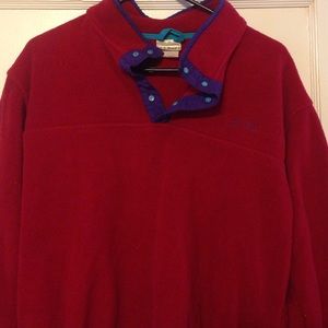 Cozy!!!!!!!!!!! This is the warmest clothing item I've ever worn. L.L. Bean knows how to do it! And the colors are fun, yet calm enough to where you can wear it with nearly any outfit! Red with blue/purple details! Plus, who doesn't love a sweatshirt with cute lil' pockets on the side. Barely worn at all! L.L. Bean is quality comfort, and with this price your winning! Price negotiable.