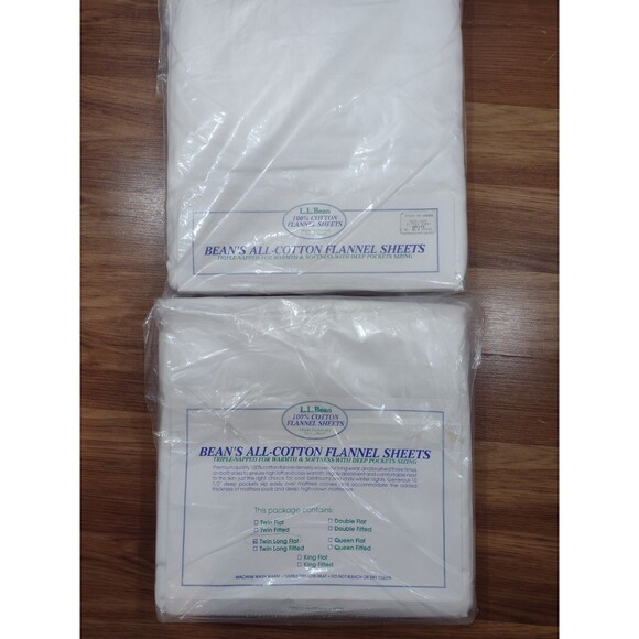 Vintage LL Bean 100% Cotton Flannel Fitted Flat Sheet Long White Portugal NEW In Package