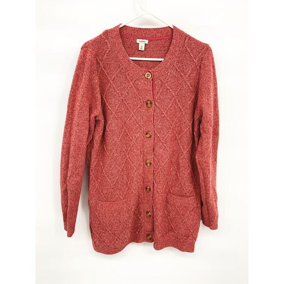 LL Bean 100% Cotton Salmon Pink Cardigan Sweater Button Down Size XL