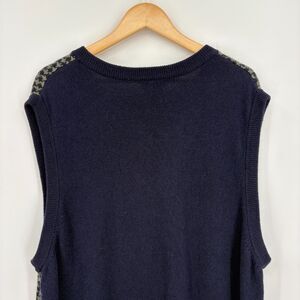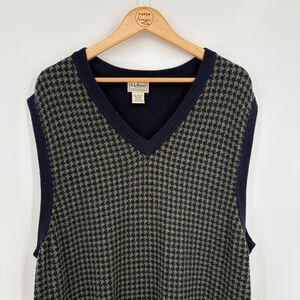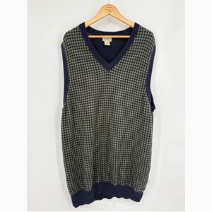 LL Bean 100% Lamb's Wool V neck Sweater Vest XXL-Tall Green Blue Houndstooth
