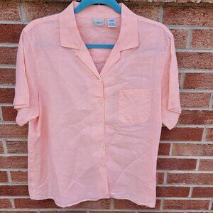 L.L. Bean 100% Linen Button Up Shirt Women's Size Large Peach Orange