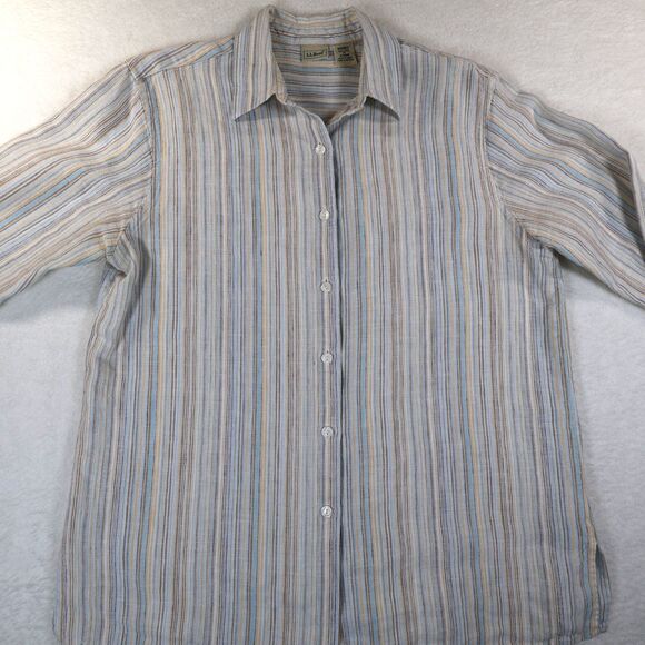 LL Bean 100% Linen Shirt Womens Medium Long Sleeve Striped