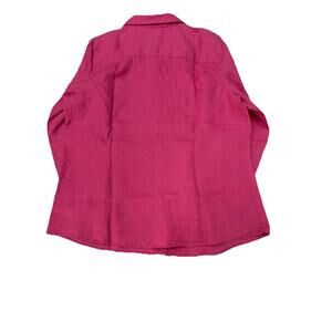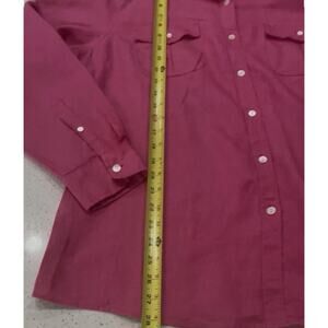 TLL Bean 100% Linen Button Up Shirt in pink features a collared neckline, button closure, and relaxed fit.