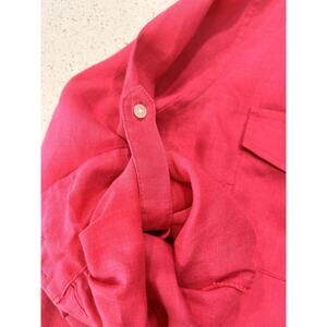 LL Bean 100% Linen XL Button up Shirt Roll Tab Pink Pockets Minimalist City Chic