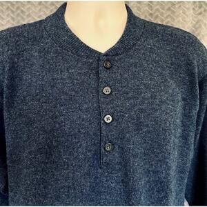 L.L. Bean Mens 100% New Lambswool pullover. Beautiful Azure blue in color. Made in Scotland. 4 button down neckline can be worn open of buttoned up. Crew collar and hemline. Beautifully made item. Perfect condition.