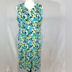 L.L. Bean 100% cotton aquamarine and yellow tropical dress size medium