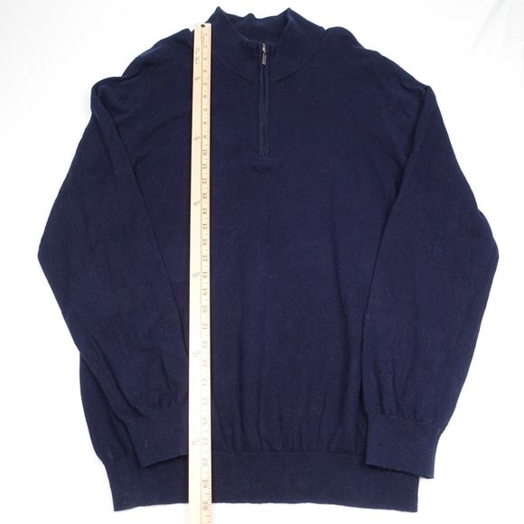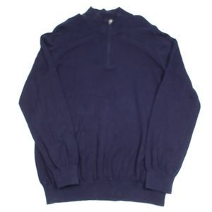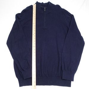 LL Bean 1/4 Zip Sweater Men's L Navy Blue Pullover Mock Neck Long Sleeves Knit