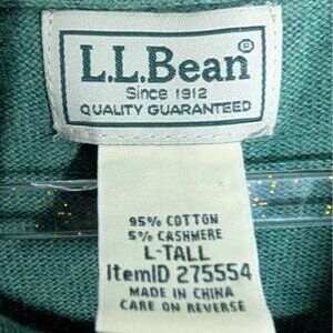 LL Bean 1/4 Zip Sweater Mens Size Large Tall Green Cotton Cashmere Pullover