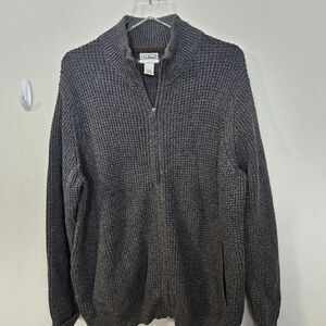 L.L. Bean 1/4 Zip Waffle Knit Organic Cotton Heavyweight Sweater Mens Gray Size