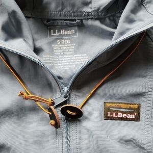 LL Bean light weight women's jacket with hood, front kangaroo pocket. 2 toned in aqua and maroon.